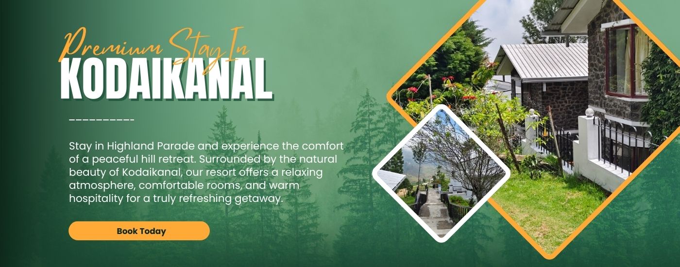 Nestled amidst the serene hills of Kodaikanal, Highland Parade offers a peaceful retreat surrounded by nature, misty views, and fresh mountain air.